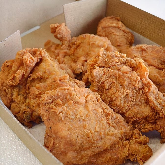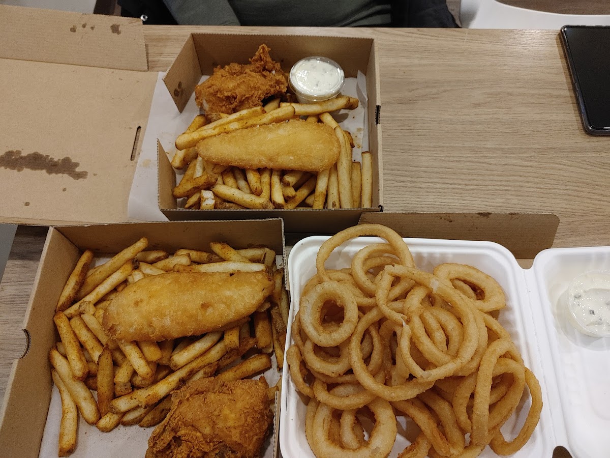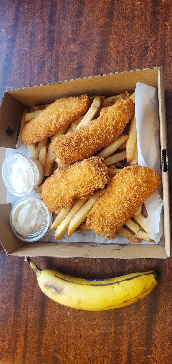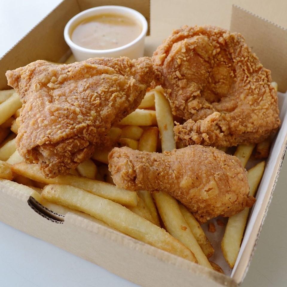 “ Update: 2nd order - in photos halibut tenders(?) and honey garlic chicken burger. Halibut tenders not worth the price wouldn't order again. The texture was very similar to a chicken tender and pieces very small. Mom had chicken burger and said the chicken was flavorful and moist although it was much smaller than it previously had been. Ordered last night and most of the food was amazing! Ordered the 6 piece meal with macaron salad and fries. Also ordered a side of gravy, coleslaw & the fried scallops. Chicken was super moist and crunchy with more than enough fries. Was half worried about portion sizes of gravy and salads but it seemed to be enough for the two of us so no complaints there. The scallops were tasty but verrrry small which is probably why they threw in an extra. I typically enjoy macaroni salad more than anything but I actually enjoyed the coleslaw more than the mac. Still both very tasty! Finished some cold chicken today and it was still just as good. Will be back to try more. Just realized I forgot to take a photo of the actual chicken.. Will get one next time! ”