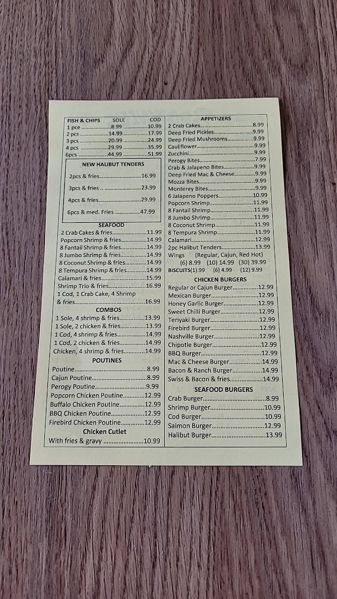 Chicken enthusiasts are spoiled for choice with Chicken Packs like the Family Pack or Party Pack, alongside Chicken Only options such as 6 Pieces Chicken or a massive 50 Pieces Chicken for groups. The Chicken Burgers range-from the spicy Jalapeño Ranch Chicken Burger to the rich Mac and Cheese Chicken Burger-adds creativity and variety. Sides like Onion Rings, Biscuits, and One Piece of Cod make excellent accompaniments, while Poutines such as the Buffalo Ranch Chicken Poutine and Firebird Chicken Poutine elevate the Canadian classic.