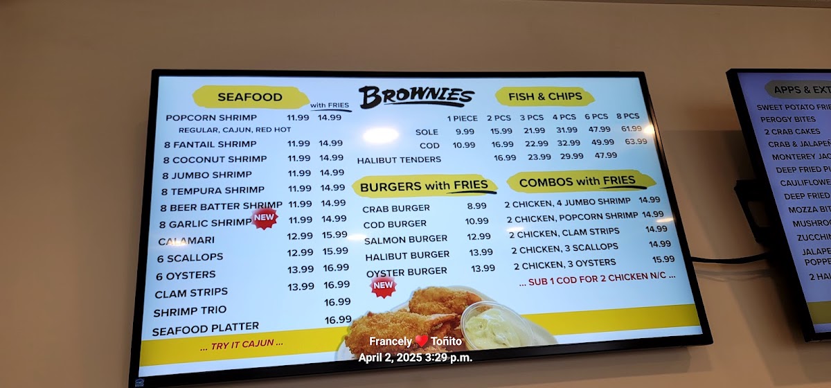 Brownies Chicken and Seafood at 32650 Logan Ave, Mission, BC V2V 6C7, Canada, offers a menu that perfectly balances comfort food favorites with generous portions and variety. The Combo Meals section stands out, featuring combinations like 2 Chicken, 2 Halibut Tenders Combo or One Fish, Four Shrimp Combo, making it easy for diners to enjoy both land and sea flavors in one satisfying meal. Appetizers such as 10 Scallops, Deep-Fried Mac and Cheese (10), and Jumbo Shrimp (6) set the tone for a hearty dining experience, while Calamari and Chicken Wings cater to classic cravings.