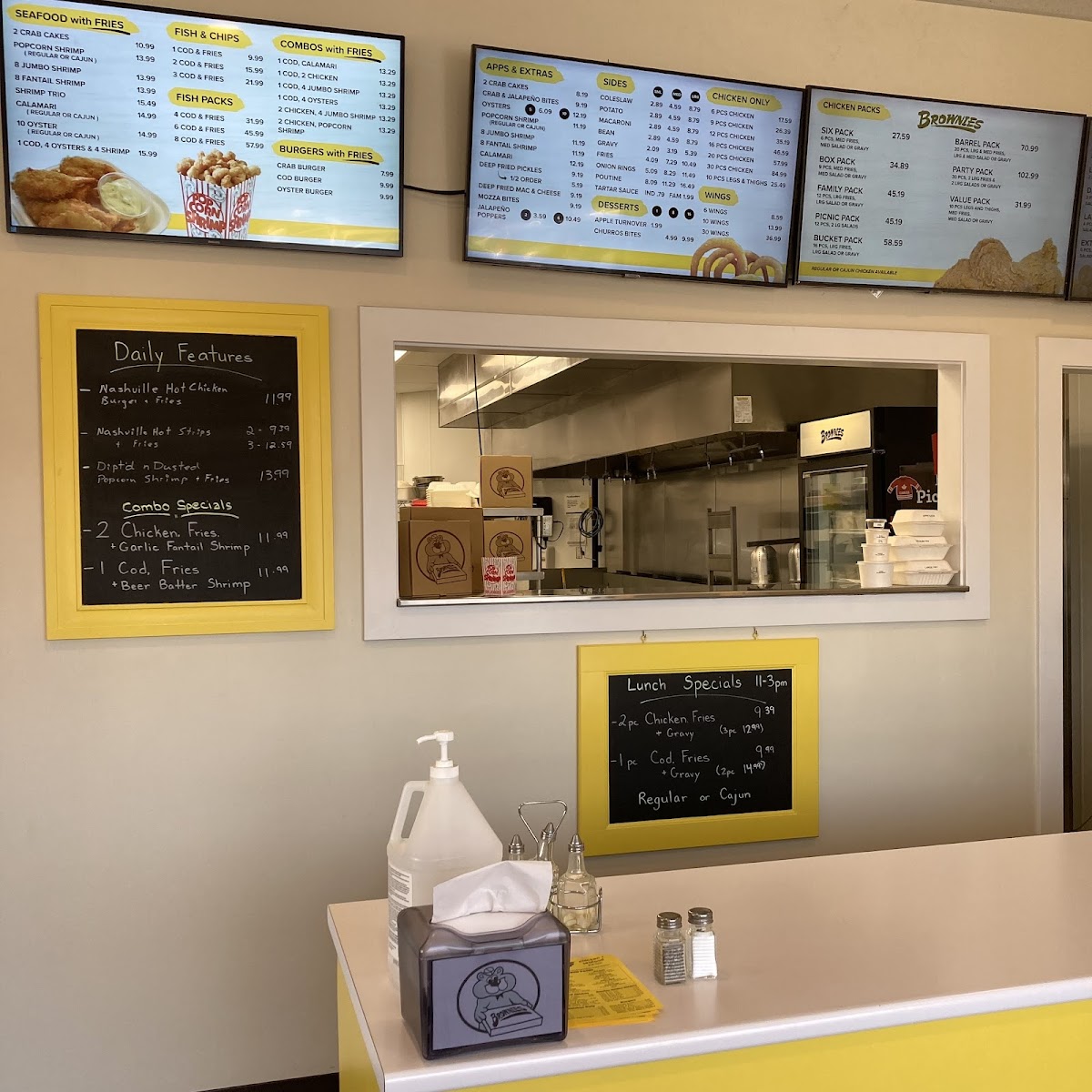 Finally, sweet endings await with Chocolate Brownie, Churro Bites (12), or a comforting Hot Apple Pie. Whether you’re craving a quick Lunch, a family-sized Bucket Pack, or a refreshing Bottle Pop (2 L), Brownies Chicken and Seafood delivers flavor, variety, and value-all served with hearty, homemade charm.