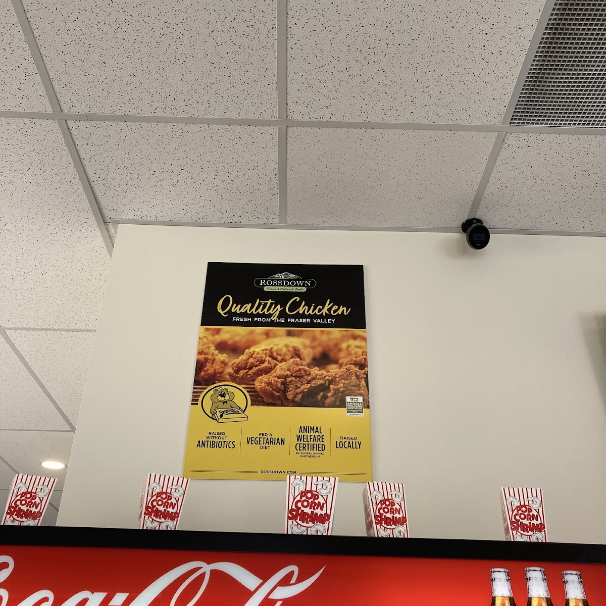 Cavendish fries, topped with popcorn chicken, bacon, cheese, green onions, and ranch drizzle.